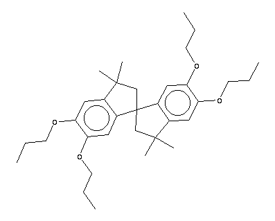 中文名称:四甲基四丙氧基螺二茚 英文名称:Tetramethyltetrapropoxyspirobiindane 中文别名:3,3,3,3-四甲基-5,5,6,6-四丙氧基-1,1-螺二茚;3,3,3',3'-四甲基-5,5',6,6'-四丙氧基-2,2',3,3'-四氢-1,1'-螺二[茚];3,3,3',3'-四甲基-5,5',6,6'-四丙氧基-1,1'-螺环二茚满 CAS RN:89929-65-7 分 子 式:C33H48O4 分 子 量:508.7318 结构式: